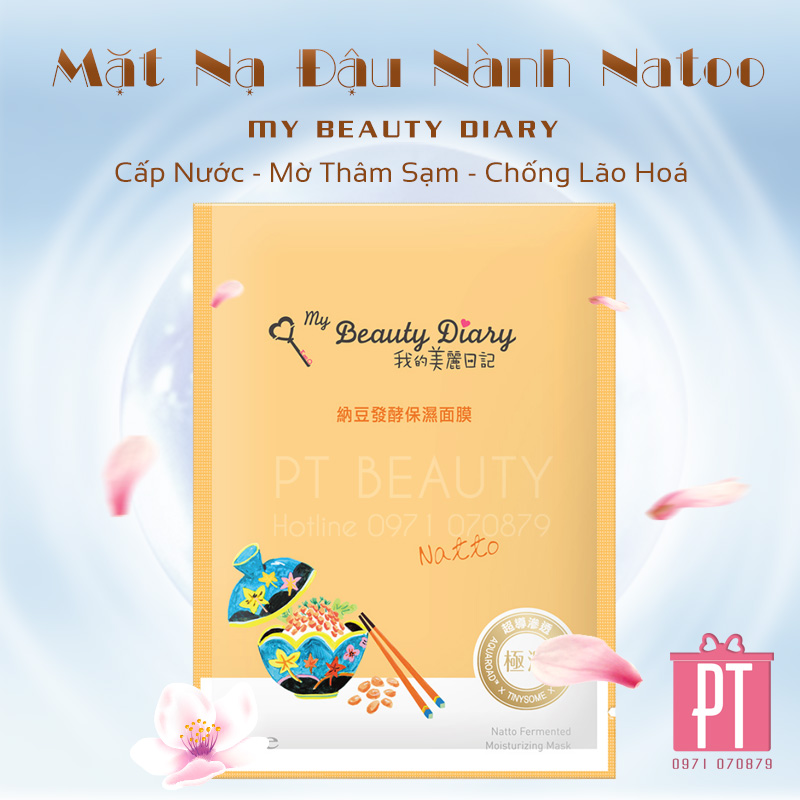 🍲 𝐌𝐚̣̆𝐭 𝐍𝐚̣ 𝐃𝐮̛𝐨̛̃𝐧𝐠 𝐀̂̉𝐦 𝐒𝐚̂𝐮 𝐌𝐲 𝐁𝐞𝐚𝐮𝐭𝐲 𝐃𝐢𝐚𝐫𝐲 𝐍𝐚𝐭𝐭𝐨 𝐅𝐞𝐫𝐦𝐞𝐧𝐭𝐞𝐝 𝐌𝐨𝐢𝐬𝐭 𝐌𝐚𝐬𝐤 có chiết xuất chính từ natto lên men 3D giàu chất isoflavone. Natto có các tính chất như làm dịu, ngậm hydrate, và làm chậm dấu hiệu lão hóa. Ngoài ra, sản phẩm này còn có chiết xuất từ rong biển giúp hỗ trợ cấp ẩm sâu cho làn da. Cùng axit amin, collagen và polysacarit,... đem đến công dụng điều trị chống lão hóa hữu hiệu.