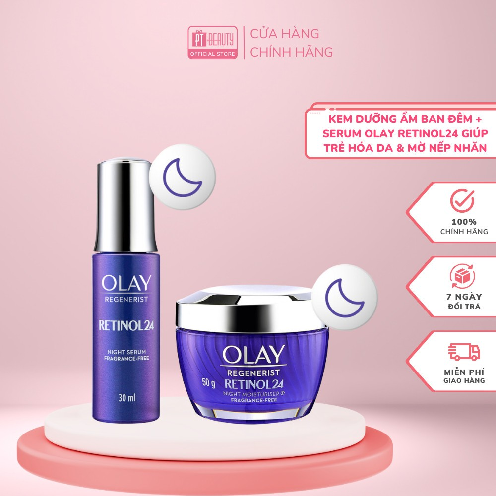 Combo Kem Dưỡng Ẩm Ban Đêm + Serum OLAY RETINOL24 Giúp Trẻ Hóa Da & Mờ Nếp Nhăn 50G + 30ML