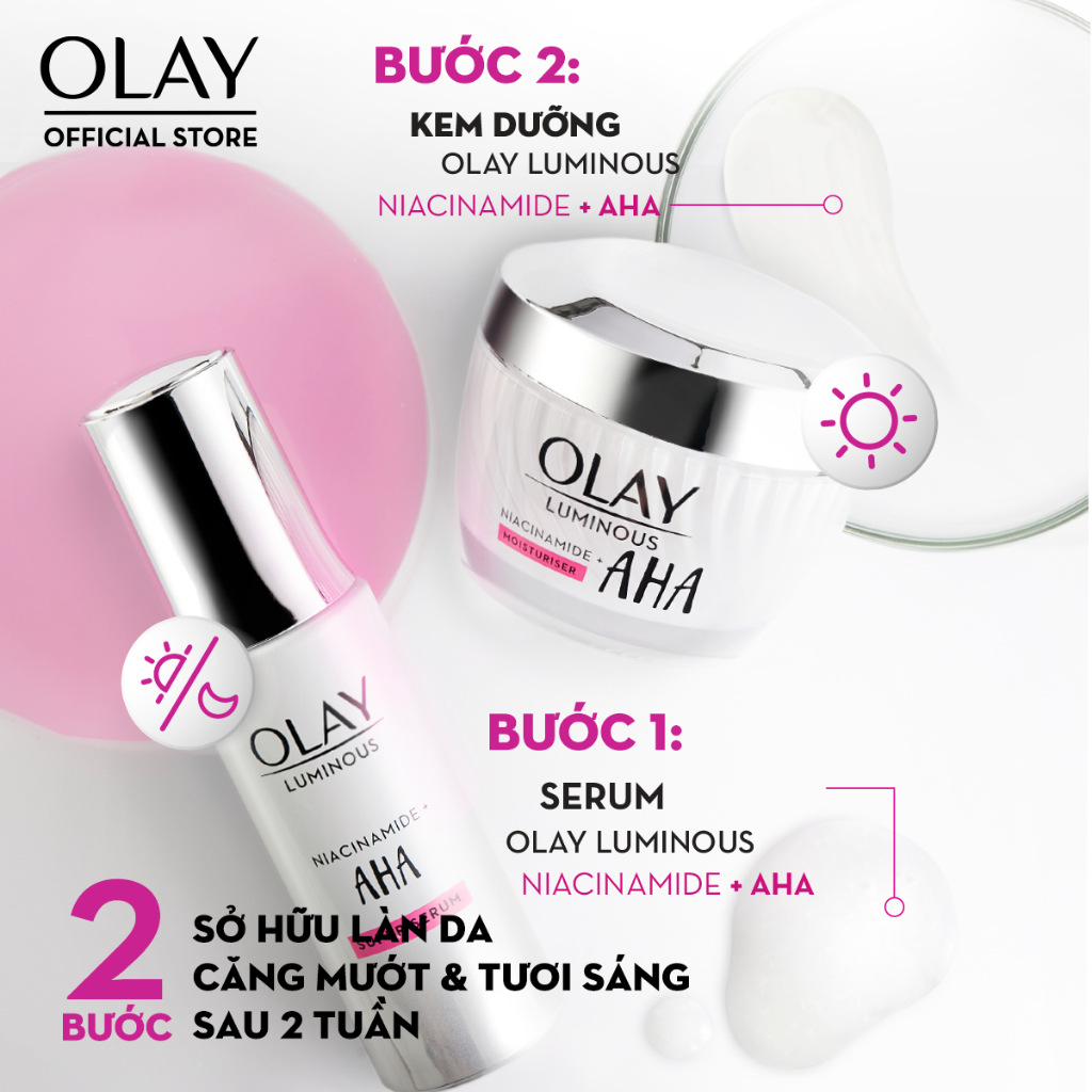 Combo Kem Dưỡng Ẩm + Super Serum Sáng Da, Mờ Thâm Mụn OLAY LUMINOUS NIACINAMIDE AHA (50G + 30ML)