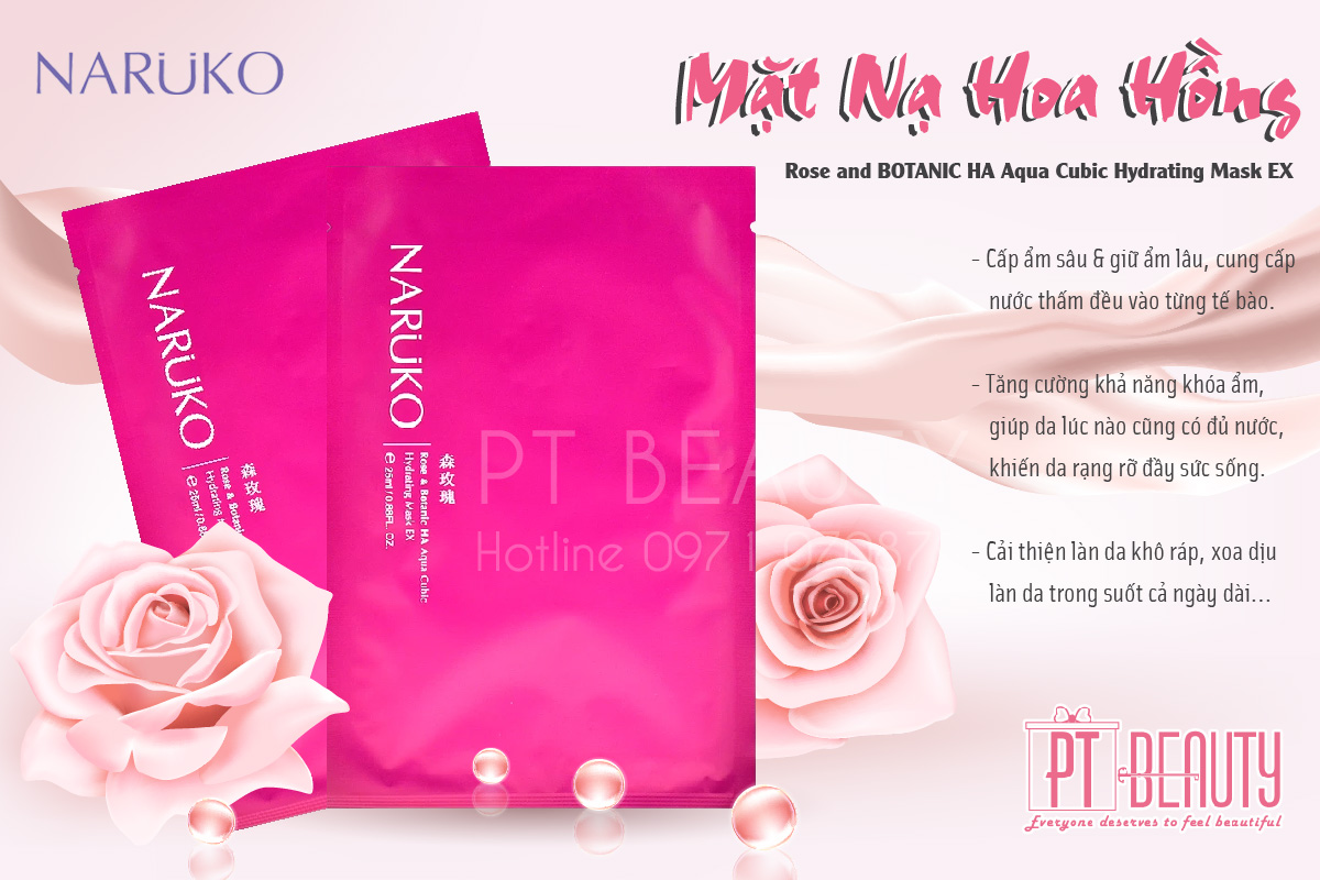 🥀 𝐑𝐨𝐬𝐞 𝐀𝐧𝐝 𝐁𝐨𝐭𝐚𝐧𝐢𝐜 𝐇𝐚 𝐀𝐪𝐮𝐚 𝐂𝐮𝐛𝐢𝐜 𝐇𝐲𝐝𝐫𝐚𝐭𝐢𝐧𝐠 𝐌𝐚𝐬𝐤 𝐄𝐱 là loại mặt nạ thuộc dòng #hoa_hồng của Naruko với các sản phẩm chiết xuất từ hoa hồng và Hyaluronic Acid có tác dụng cấp nước cho da, giữ da luôn căng mướt, mịn màng. Bên cạnh đó, tinh chất hoa hồng còn giúp loại bỏ sắc tố đen sạm trên da, mang lại làn da trắng hồng rạng rỡ.