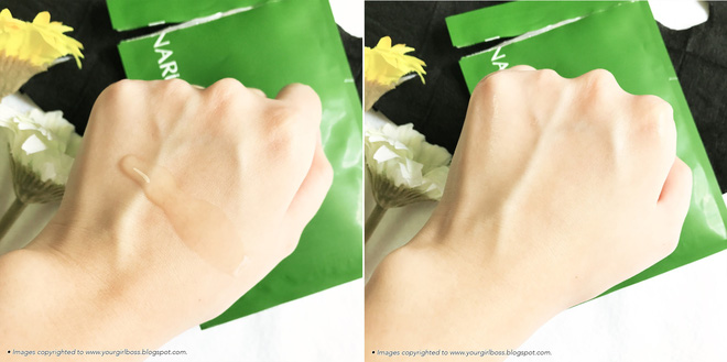 Tinh chất trong mặt nạ có thoảng mùi tràm trà tự nhiên. Tuy lượng tinh chất nhiều nhưng khá lỏng, khả năng thẩm thấu cao, giúp dưỡng ẩm cho da hiệu quả.