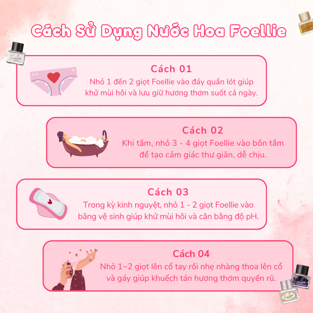 10. Foellie Eau de Innerb Perfume – Tuileries (HỘP HỒNG): mềm mại, nữ tính, ngây thơ hoà quyện của Aldehydic note, Đào, hoa hồng, tử đinh hương, Vanilla