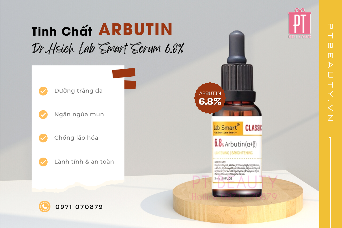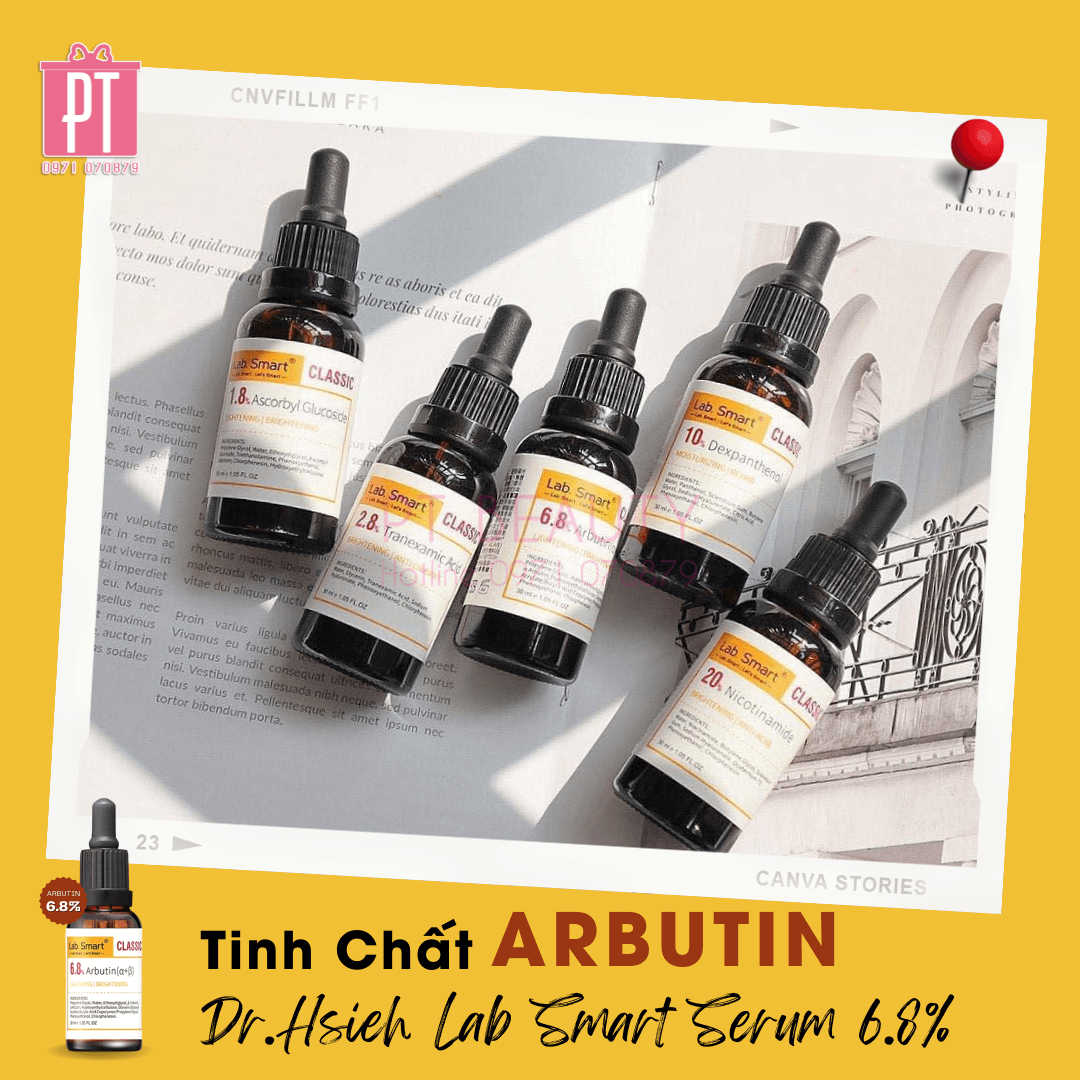 🌻 Nằm trong series các dòng serum Lab Smart của Dr.Hsieh (thương DƯỢC MỸ PHẨM nổi tiếng của Đài Loan), Tinh Chất ARBUTIN Dr.Hsieh Lab Smart Serum 6.8% được điều chế bởi các thành phần thực vật lành tính có độ tinh khiết cao đem đến công dụng dưỡng da trắng sáng hữu hiệu mà vẫn đảm bảo an toàn cho da.